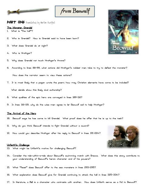 Beowulf Study Questions Engl 200 Literary Texts And Contexts Studocu